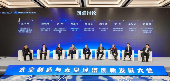 大会期间举行了圆桌论坛,中国工程院院士、北京航空航天大学教授王华明主持,中国科学院院士顾逸东,中国工程院院士周建平、吴伟仁、李东,中国工程院外籍院士李琳,香港理工大学协理副校长王钻开,北京紫微宇通科技有限公司董事长张晓敏,二十一世纪空间技术应用股份有限公司常务副总经理关盛勇8位嘉宾围绕“推动太空制造全链条技术突破、加快培育太空制造未来产业”展开讨论。