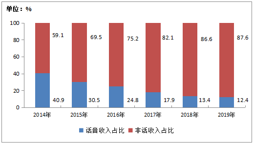 图1-3 2014-2019年电信收入结构(话音和非话音)情况