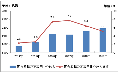 图1-4 2014-2019年固定数据及互联网业务收入发展情况
