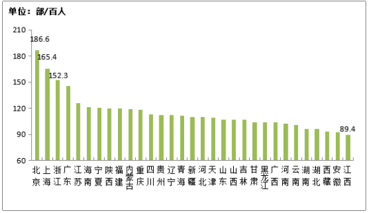 图2-2 2019年各省移动电话普及率情况