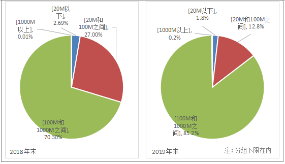 图2-3 2018和2019年固定互联网宽带各接入速率用户占比情况