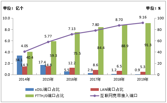 图4-1 2014-2019年互联网宽带接入端口发展情况