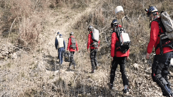 在需要徒步深入险境的救援任务中,救援者可穿戴外骨骼装甲,用来背负应急通信装备,在崎岖的山路上稳步前行,并通过Ka高通量卫星背负式动中通,在行进中为应急小队提供稳定的通信信号,保障救援队伍通信畅通。